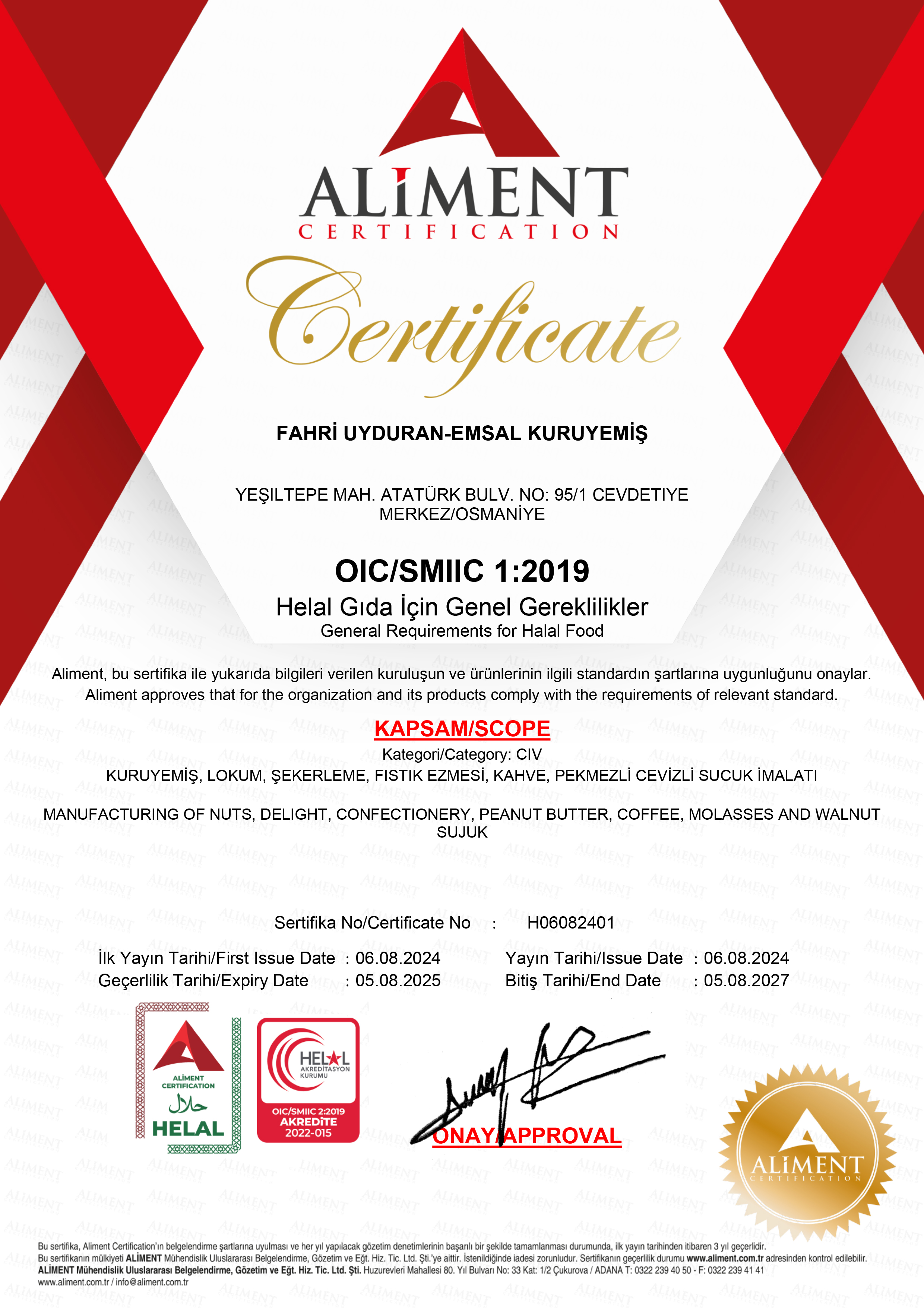 Emsal Kuruyemiş olarak, kalitemizi ve güvenilirliğimizi belgeleyen uluslararası standartlara sahibiz. Aşağıda, kurumumuzun almaya hak kazandığı kalite ve güvenlik belgelerini görebilirsiniz.